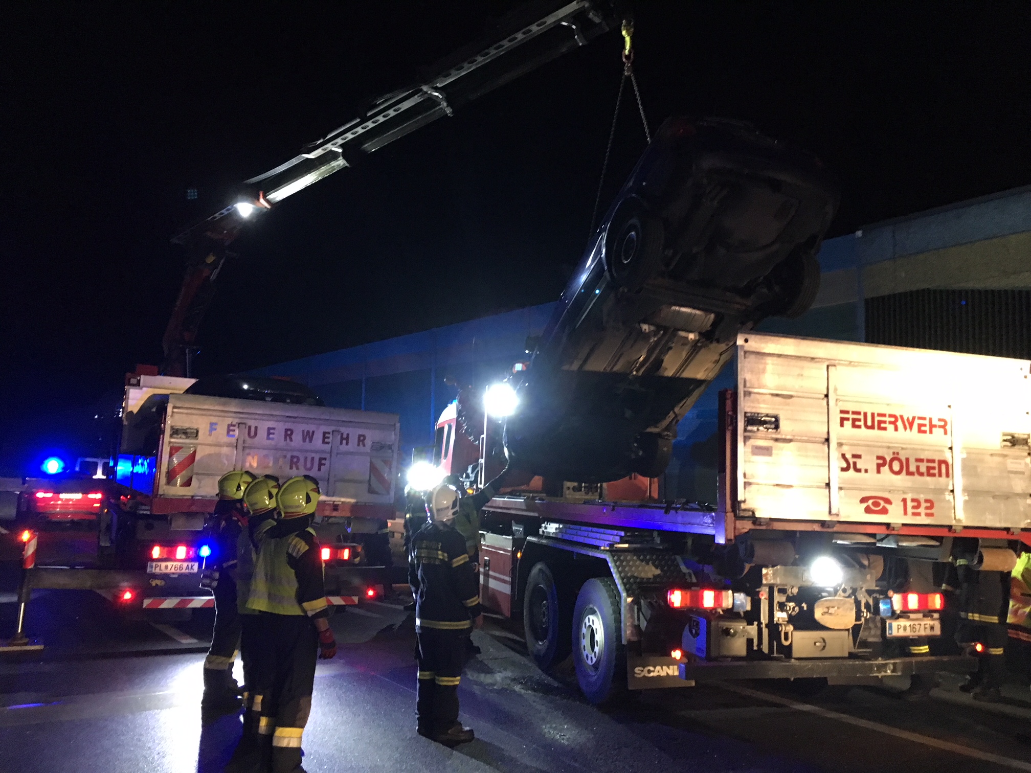 Wechselladefahrzeug nachalarmiert. Gemeinsam mit der Feuerwehr St.Pölten-Stadt wurden die Fahrzeuge von der Autobahn verbracht und gesichert abgestellt.