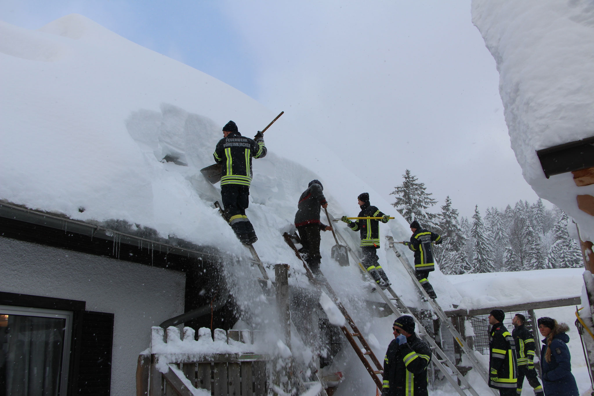 Aufgrund der anhaltenden Schneefälle waren mehrere Objekte durch die Dachlast stark gefährdet. Zur Unterstützung der lokalen Einsatzkräfte rücken über mehrere Tage die Feuerwehren aus