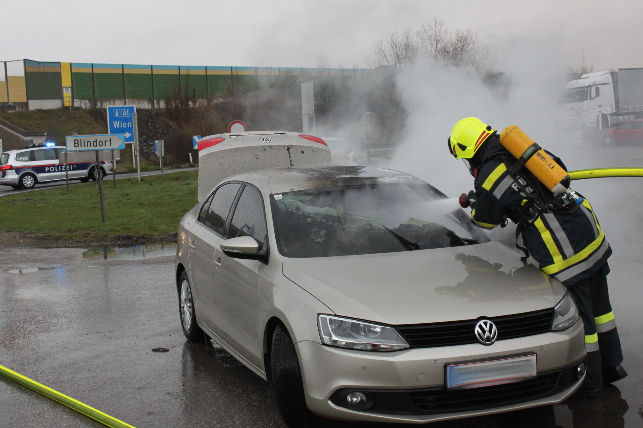 Am Mittwoch, dem 27. März 2019, wurden wir in den Morgenstunden zu einem Fahrzeugbrand, nächst der Auffahrt der Westautobahn A1, alarmiert.