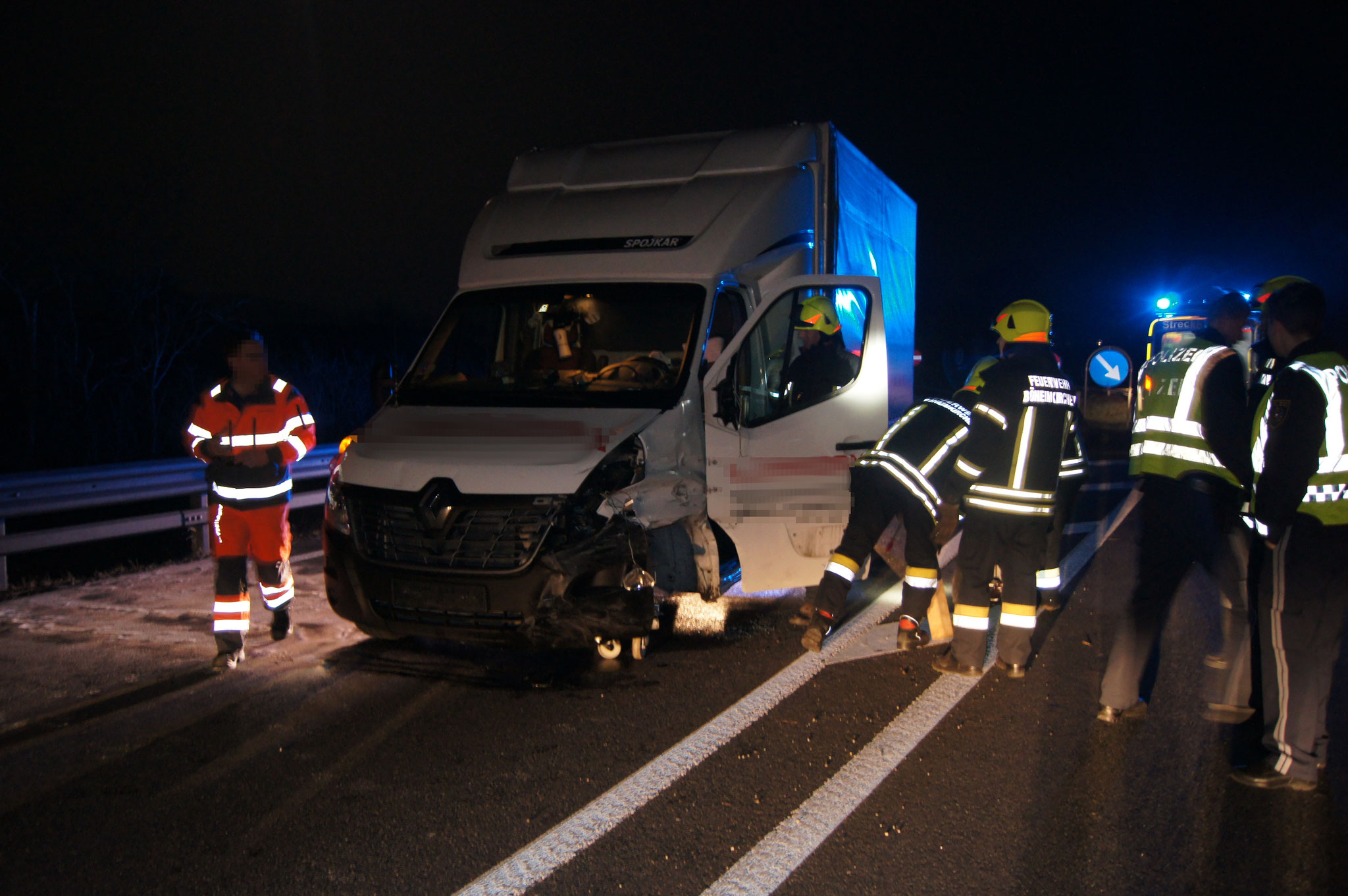 Die Aufgabe unserer Wehr bestand darin, einen fahruntüchtigen Kleintransporter von der Fahrbahn zu verbringen. Da die vordere Achse zu stark beschädigt war, musste der Transporter mithilfe