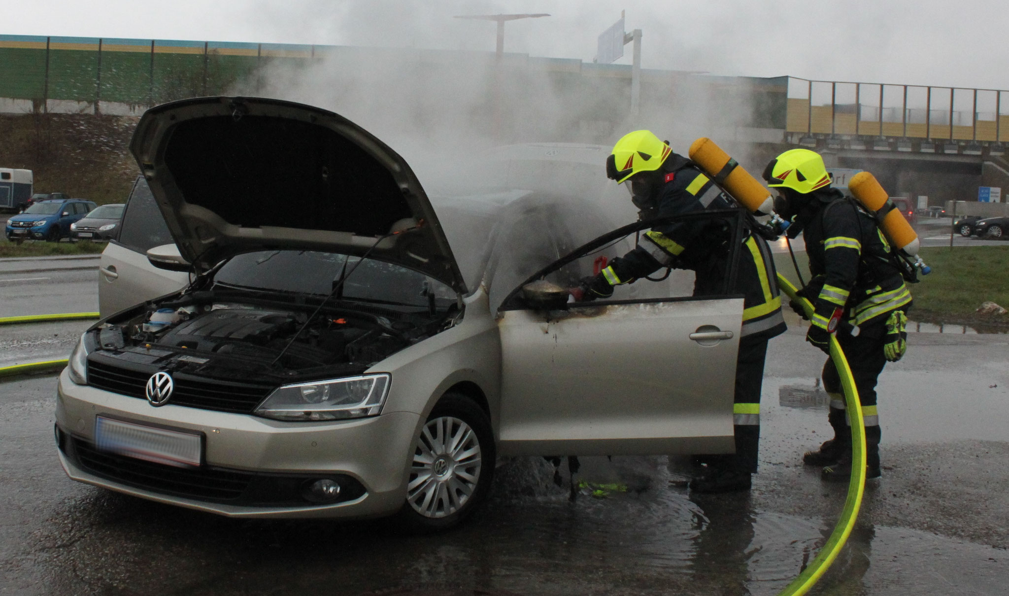 Der Brand konnte nach wenigen Minuten unter Kontrolle gebracht werden. Ein Eingreifen der weiteren Wehren war somit nicht notwendig. Das Fahrzeug wurde nach den Löscharbeiten auf dem nahe