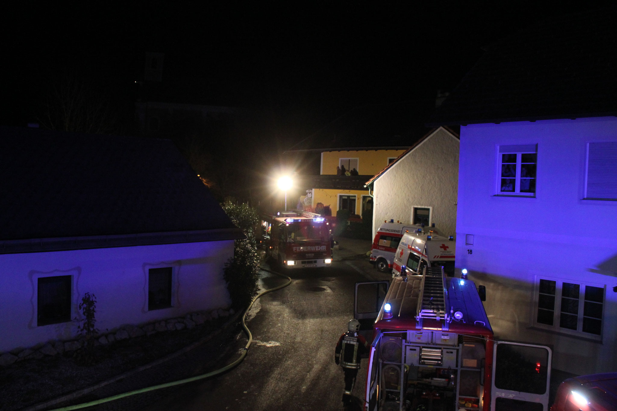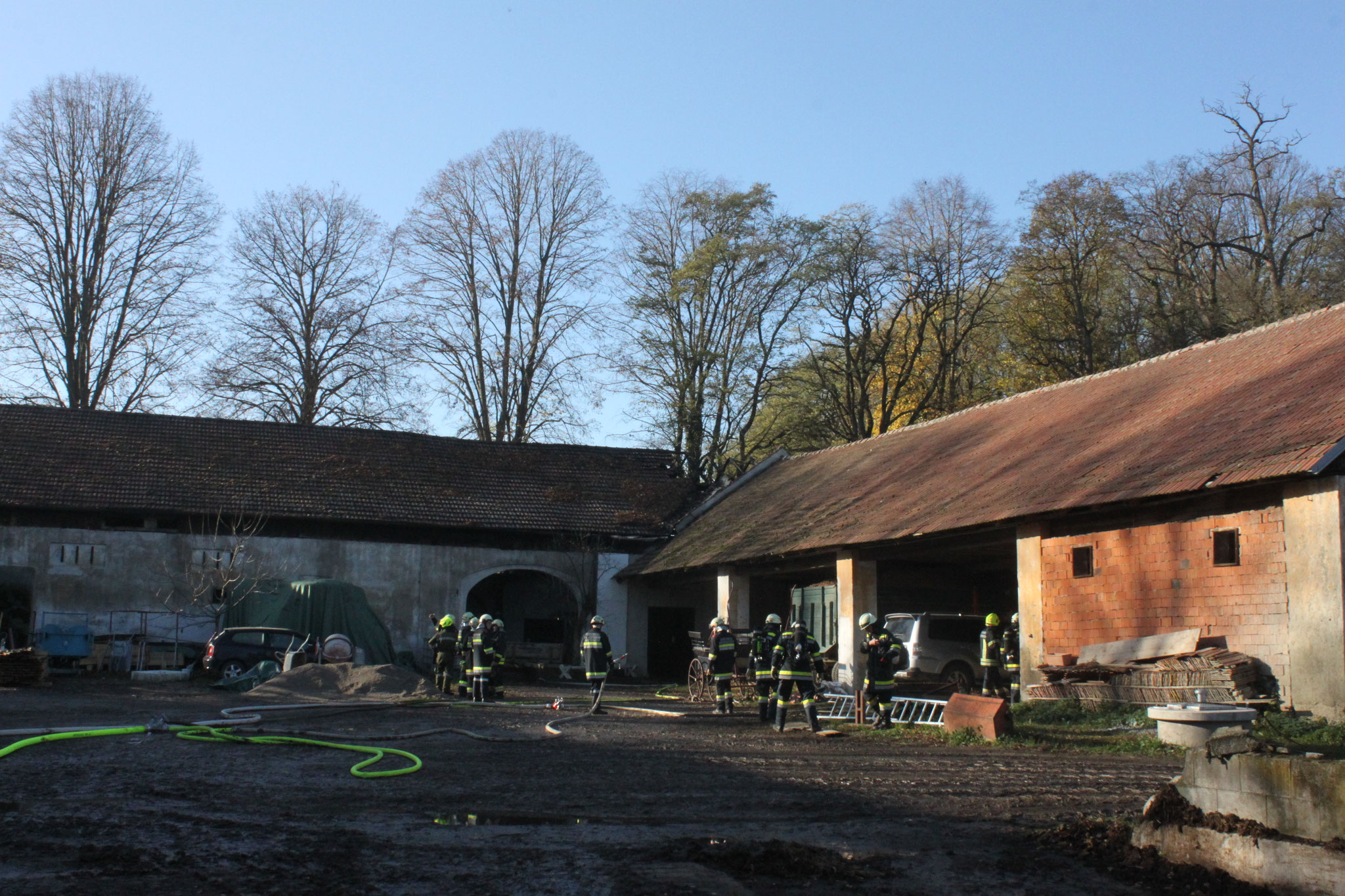 In einem Reitstall kam es, ausgehend durch einen brennenden Traktor und gelagertem Stroh, zu einem Vollbrand in einem Reitstall. Insgesamt 10 Feuerwehren und 120 Mitglieder der Freiwilligen