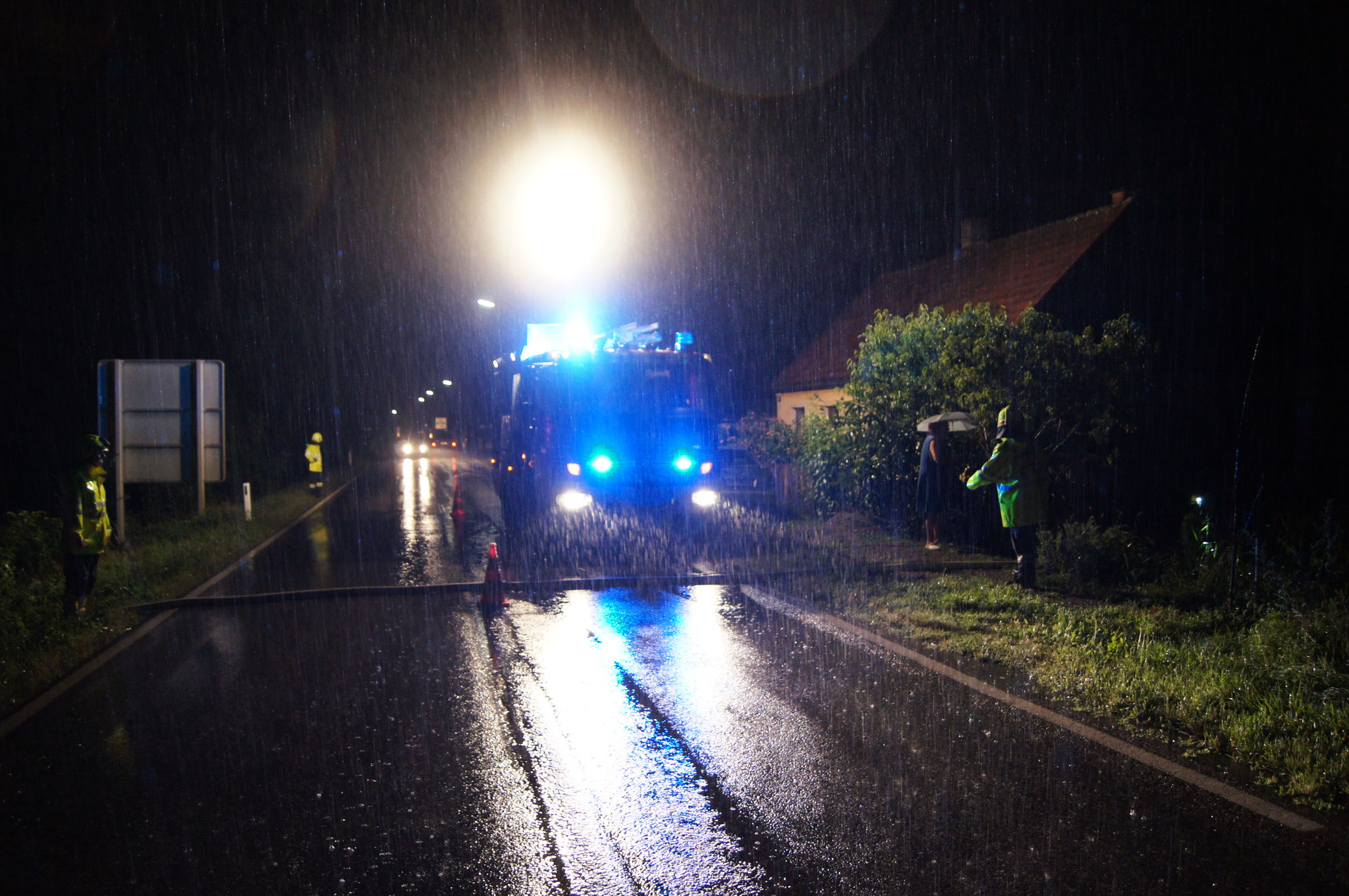 Gleichzeitig mussten fünf Einsätze abgearbeitet werden. Die Aufgabe unserer Wehr bestand darin, mehrere überflutete Häuser auszupumpen beziehungsweise vor den Wassermassen zu schützen.