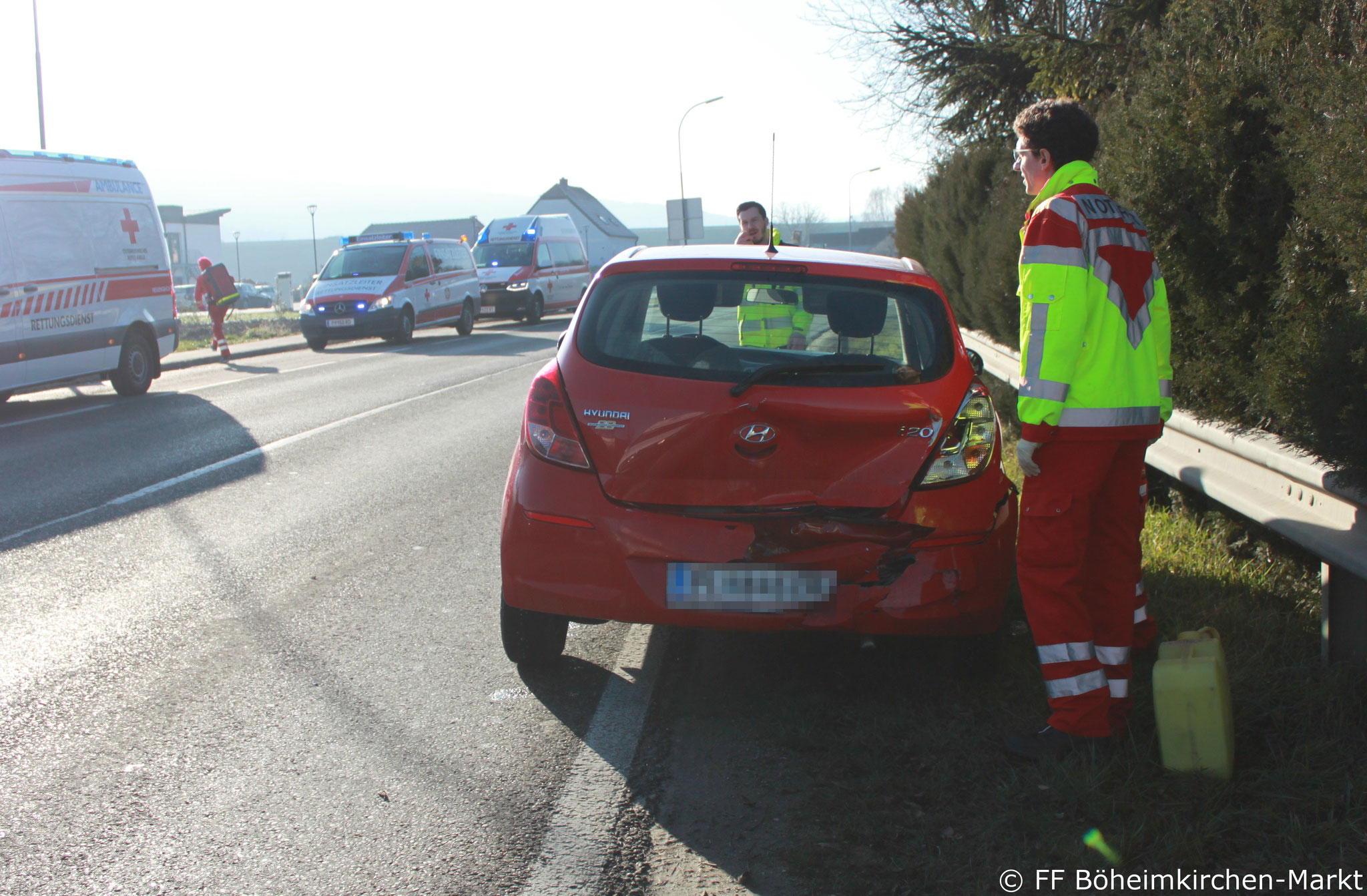 Brandschutz aufgebaut. Die ausgelaufenen Betriebsmittel wurden mit Ölbinder gebunden. Das Fahrzeug wurde auf einem Parkplatz gesichert abgestellt.