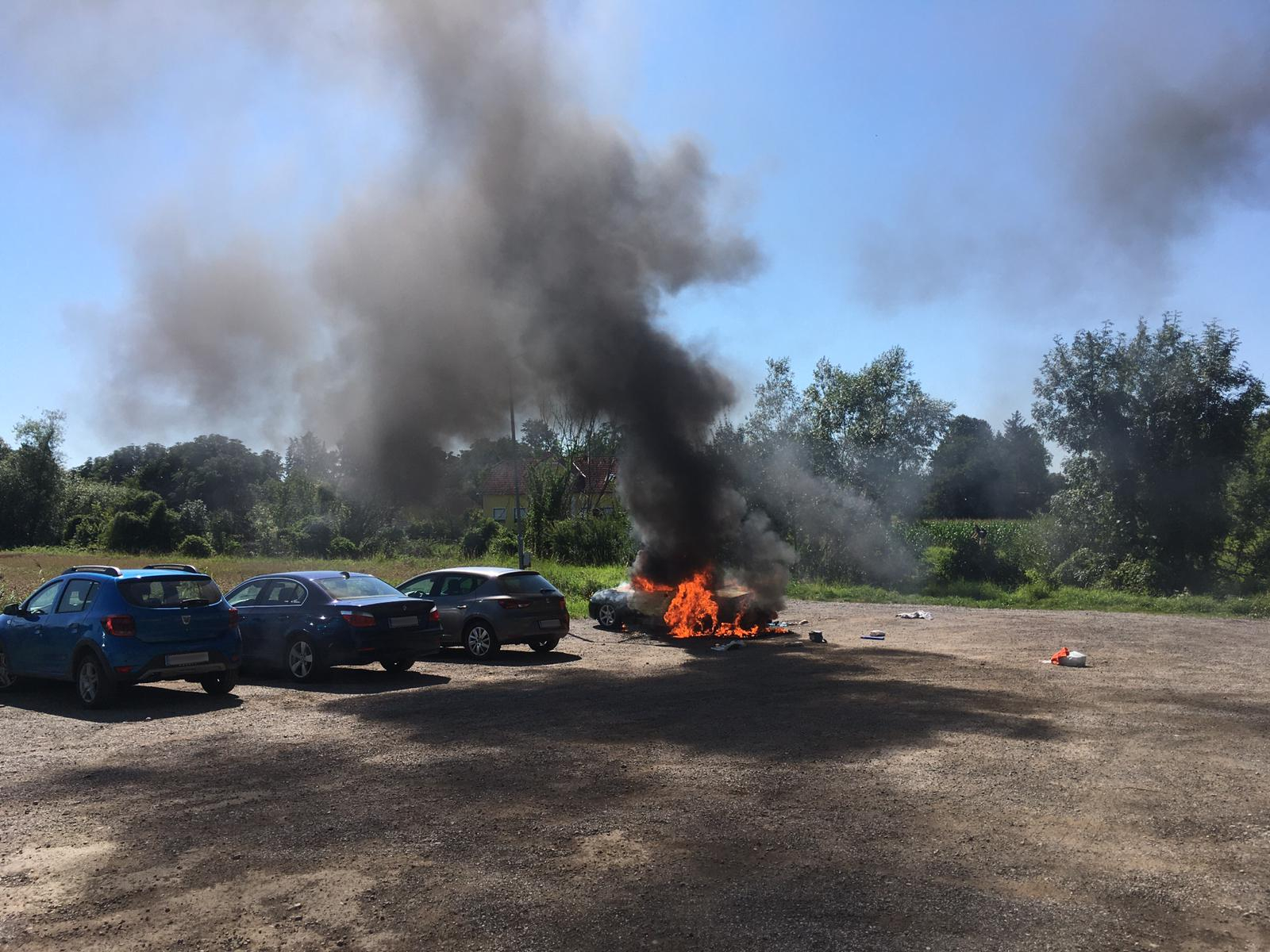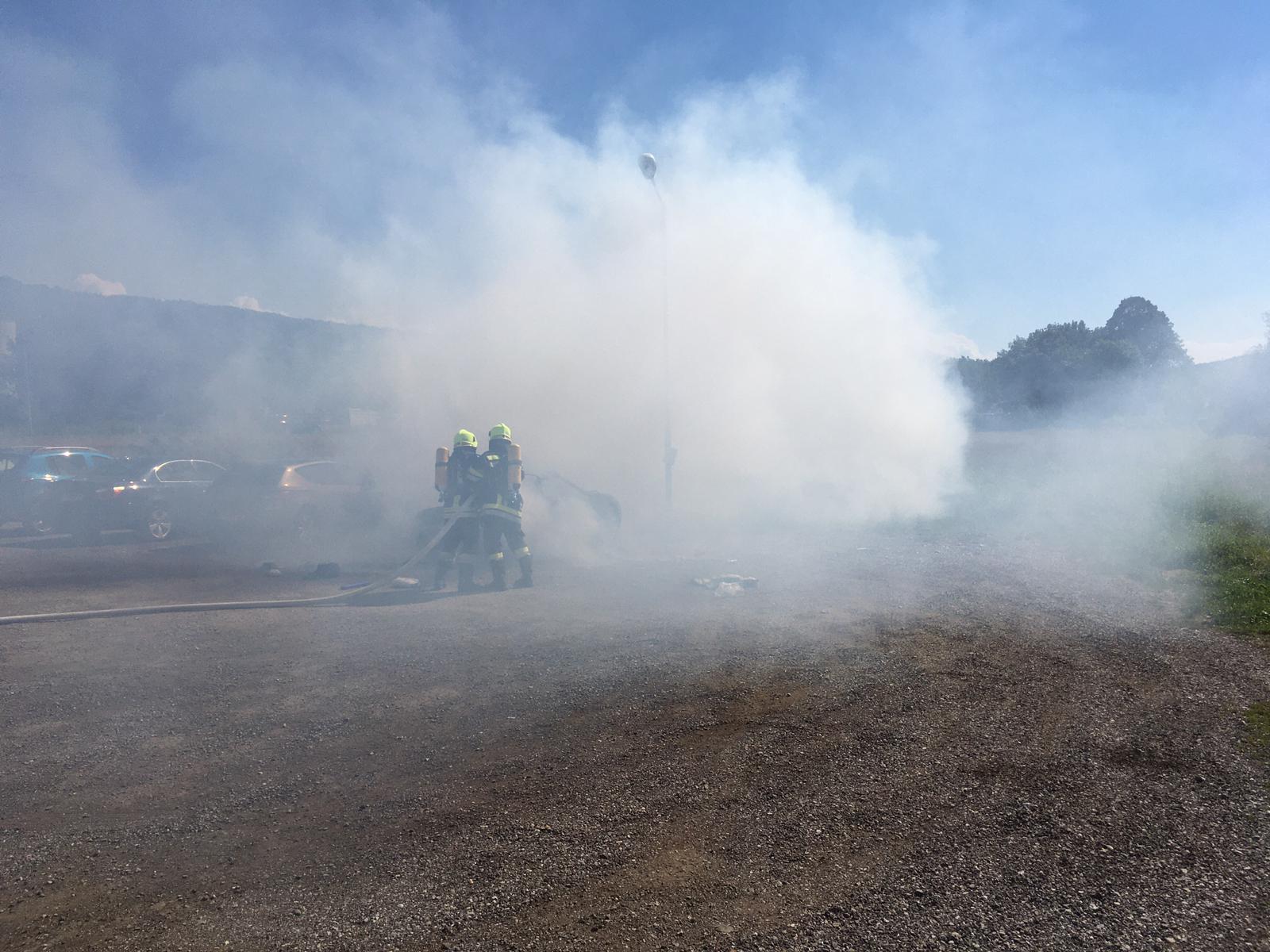 Beim Eintreffen am Einsatzort bot sich uns folgendes Szenario: Ein PKW stand in Vollbrand, der Brand drohte auf weitere Fahrzeuge überzugreifen.