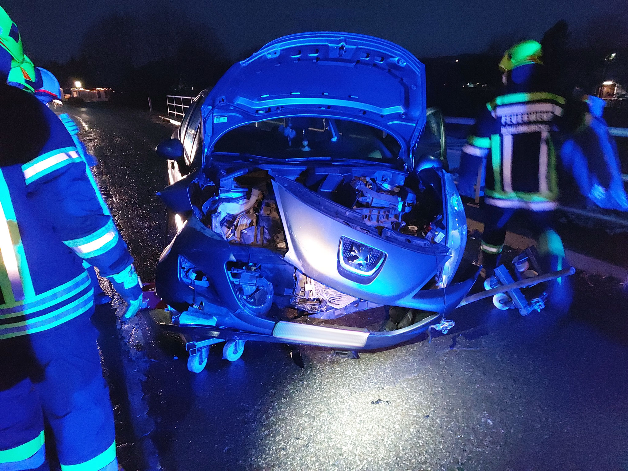 der Fahrbahn wieder zu stehen. Beim Eintreffen unserer Wehr konnte die verunfallte Person bereits durch den Rettungsdienst aus dem Wrack befreit werden. Der schwerstverletzte Insasse musste vor