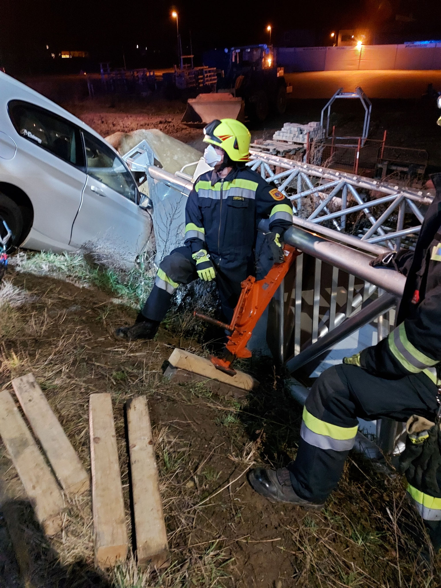 Ein Fahrzeug steckte nach einem Unfall im Straßengraben, beziehungsweise in einer Stahlkonstruktion fest. Die Aufgabe unserer Wehr bestand darin, die Unfallstelle abzusichern, einen Brandschutz