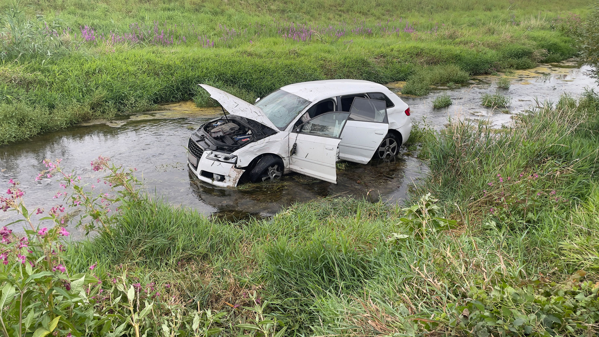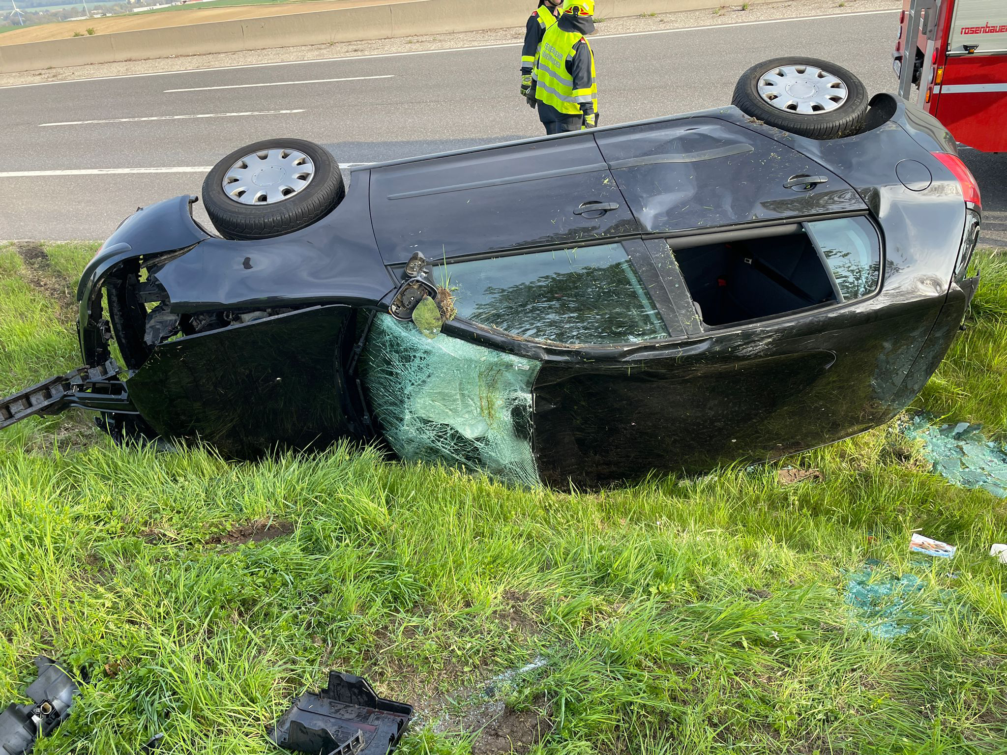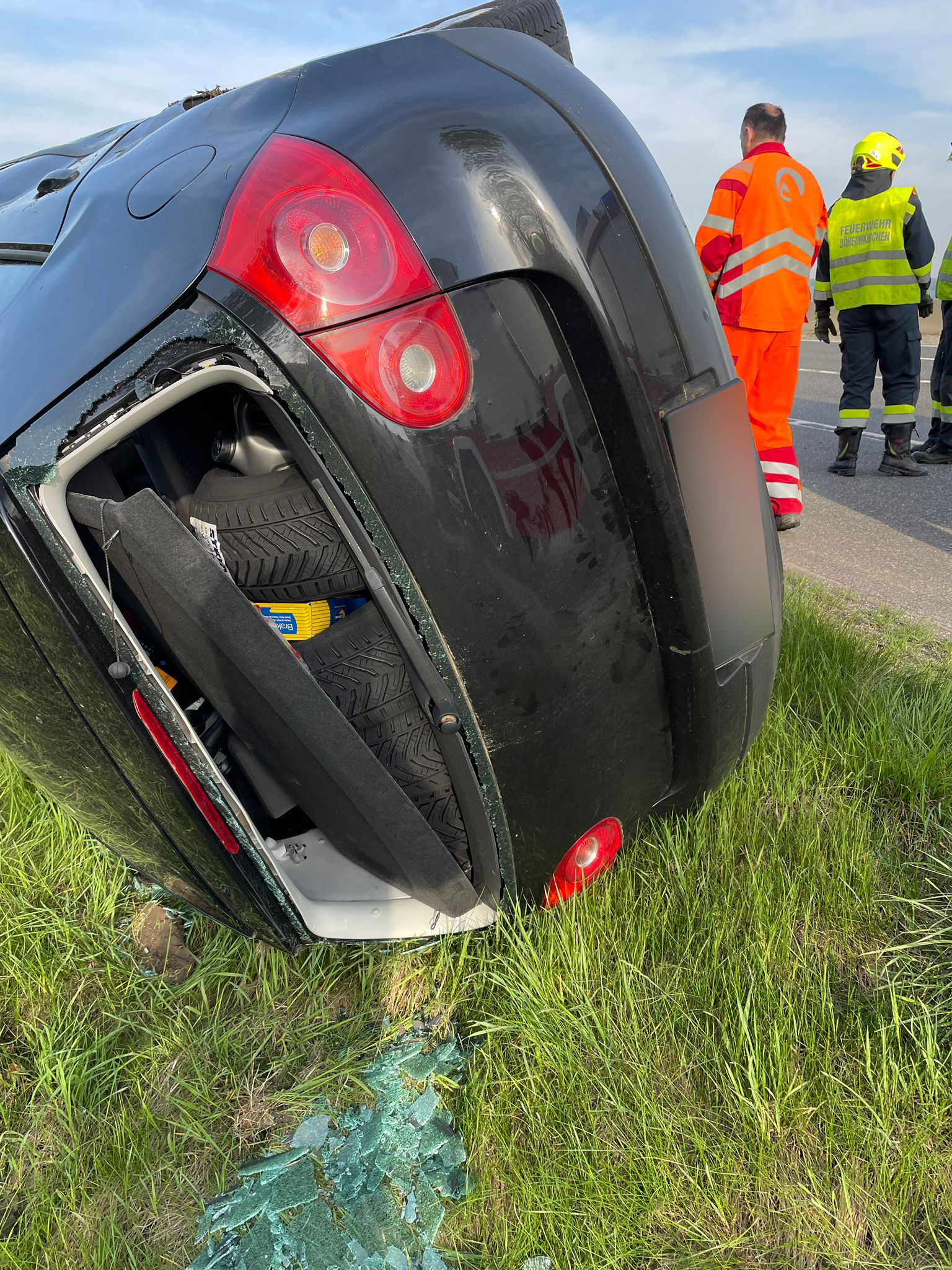 Beim Eintreffen des Rüstlöschfahrzeuges wurde ein PKW auf der Fahrerseite im Straßengraben gegen die Fahrtrichtung vorgefunden. Unser Einsatzleiter wurde über die Rettung des Fahrers durch das
