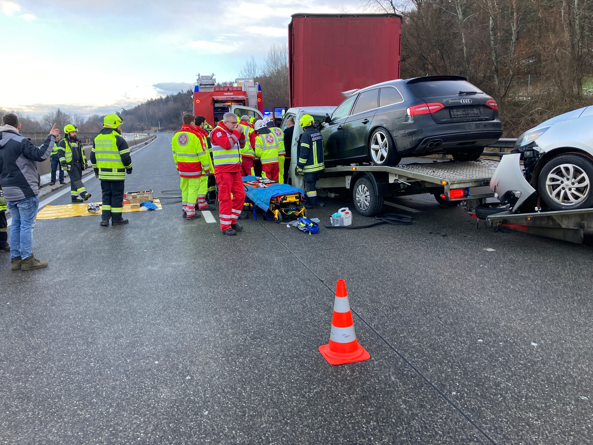 Ausfahrt St. Christophen“ aktualisiert und mitgeteilt, das mehrere Fahrzeuge beteiligt sind.