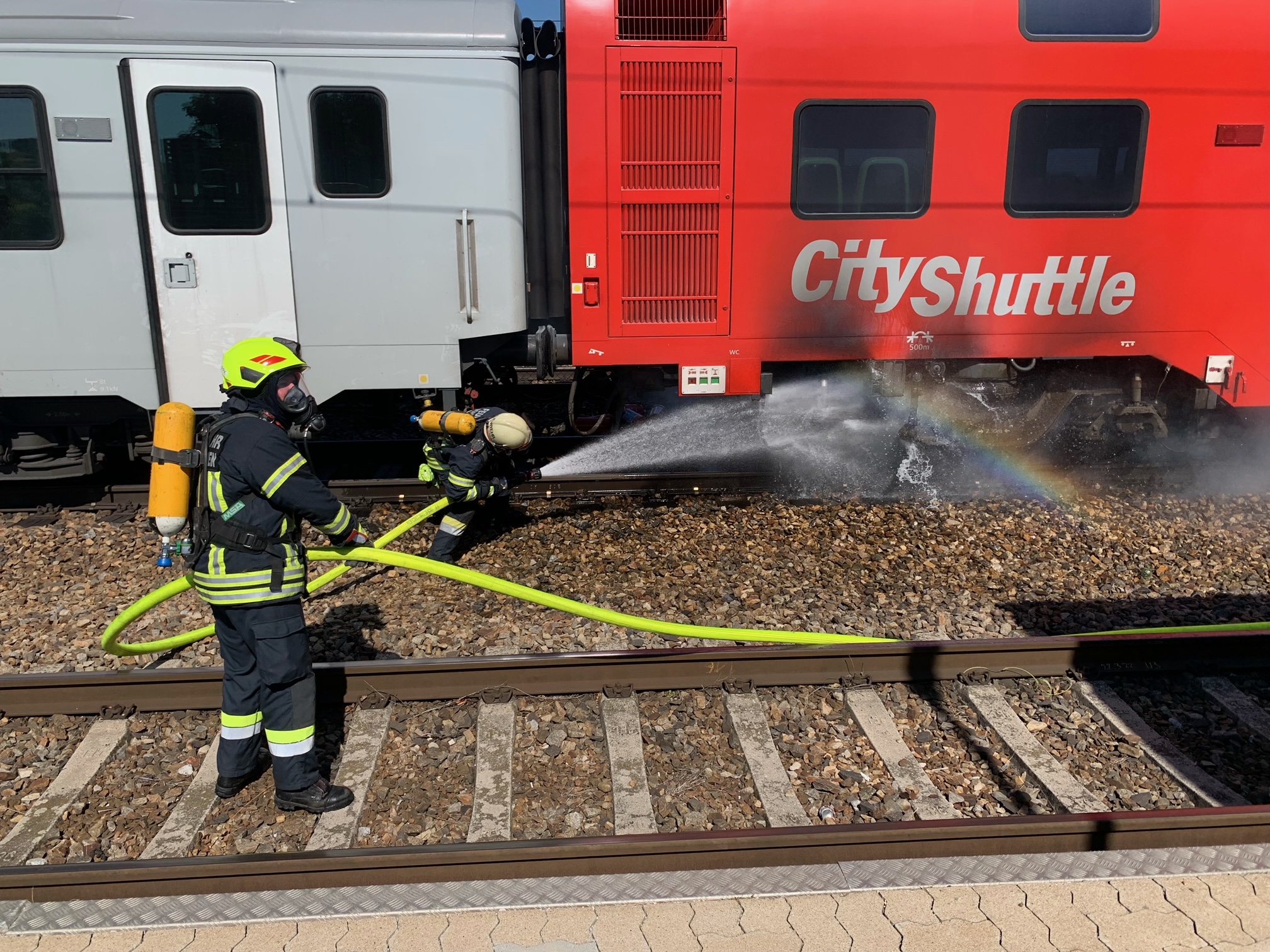 Der Fahrdienstleiter hat bereits durch den Einsatz von Feuerlöschern wertvolle erste Löschhilfe geleistet und wurde dabei leicht verletzt. Durch die rasche Lageerkundung unseres Einsatzleiters