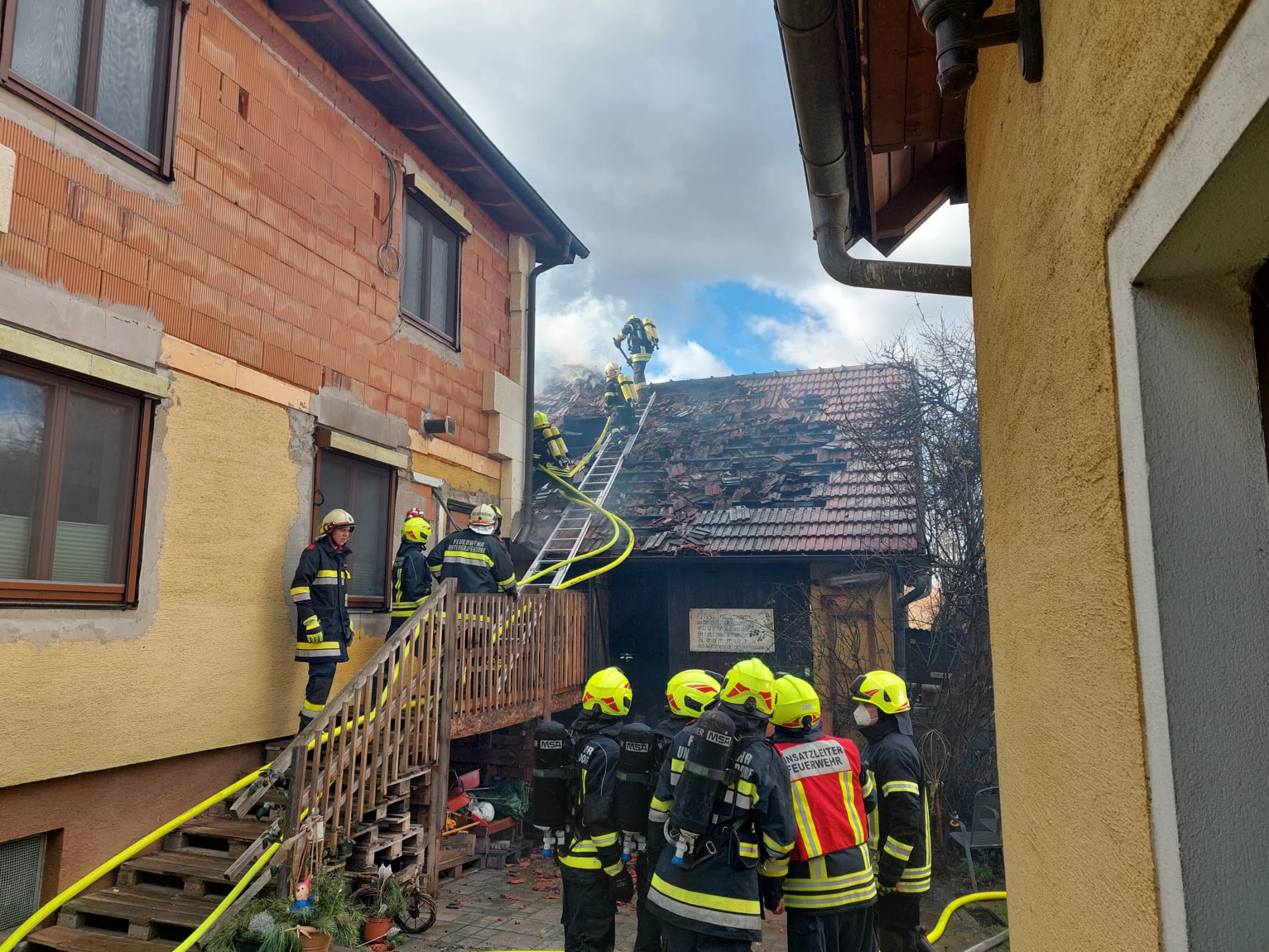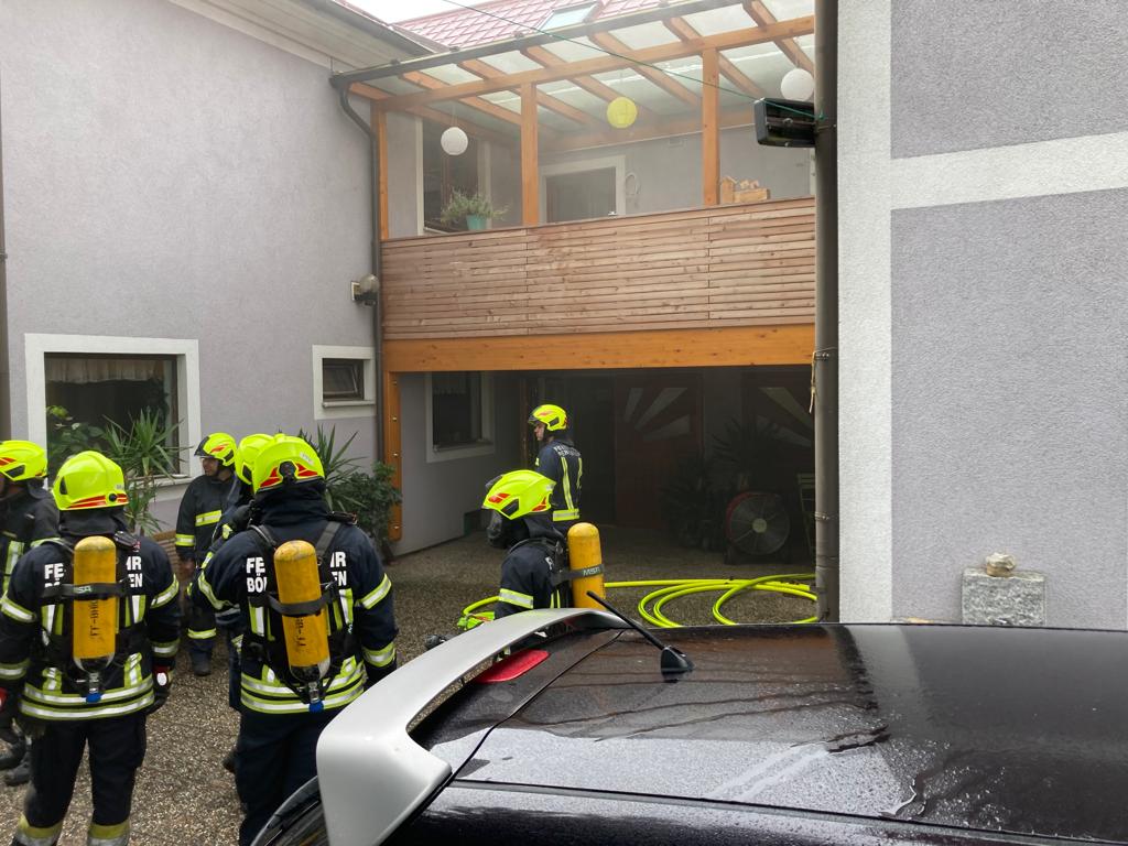 FF Haus befanden, konnten innerhalb weniger Minuten die ersten Einsatzfahrzeuge der FF Böheimkirchen Richtung Brand ausrücken. Beim Eintreffen der Feuerwehr schlugen die Flammen bereits aus dem