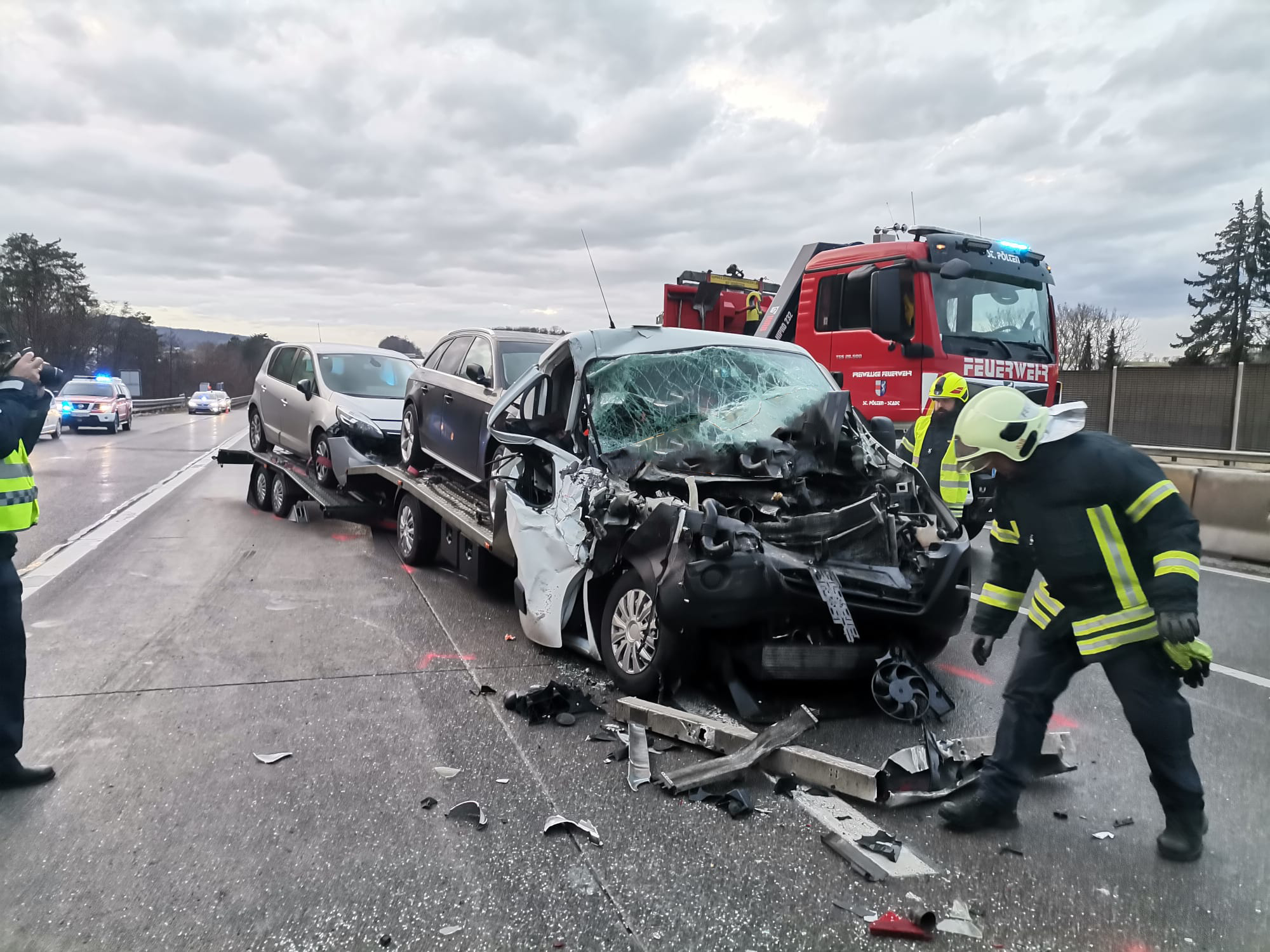 Gemeinsam mit den Kameraden der Feuerwehren St. Pölten Stadt und St. Pölten Spratzern wurden die 5 nicht mehr fahrtüchtigen PKWs abtransportiert und die Autobahn freigeräumt.