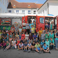 Dabei konnten alle ausprobieren, wie eine Hochdrucklöschanlage funktioniert, wie man einen Fettbrand NICHT löschen soll, wie sich ein Atemschutzgerät anfühlt und wie schwer die technischen